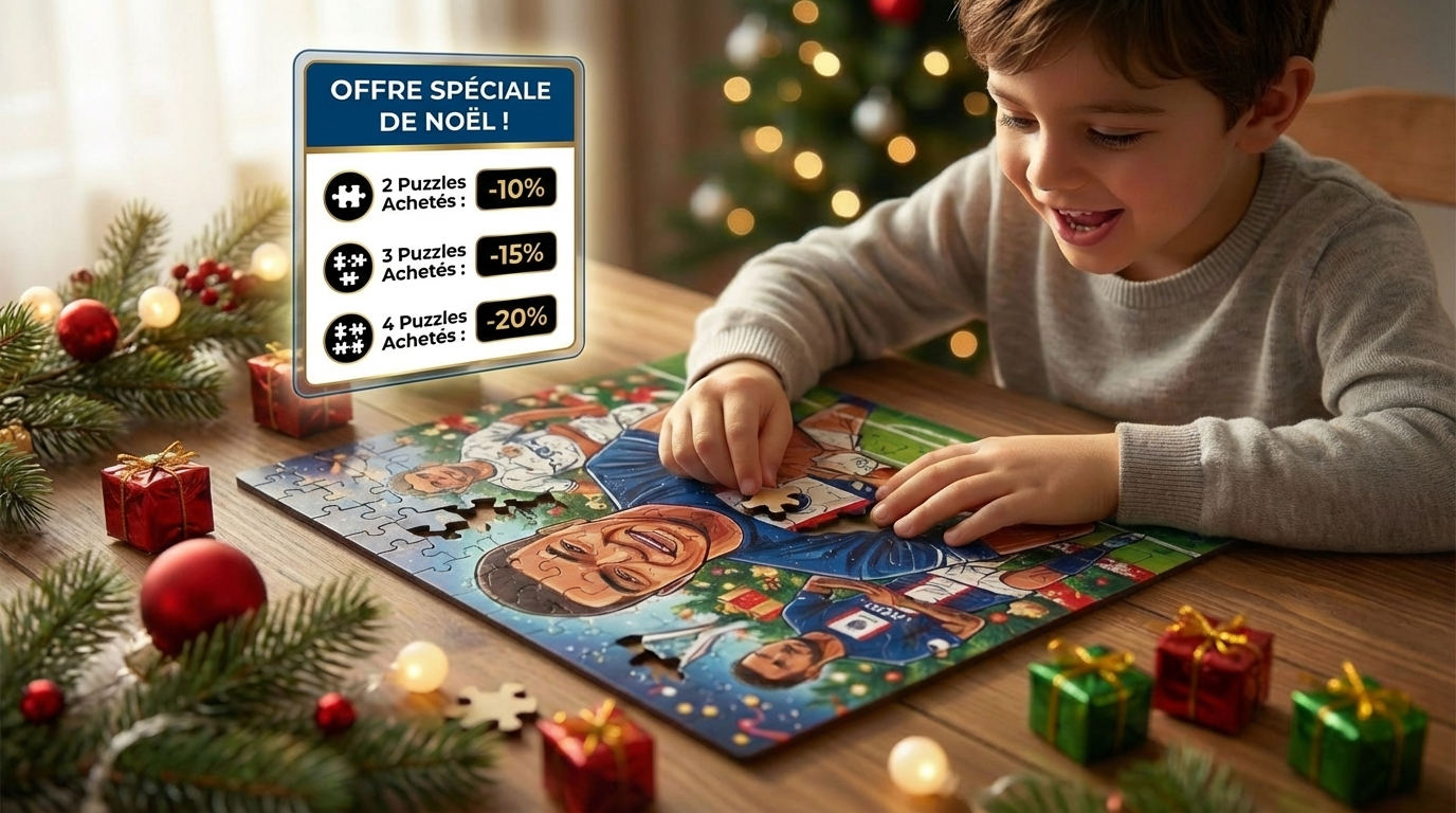 Des puzzles en bois sur le thème du football qui rassemblent petits et grands autour de la table. Des moments loin des écrans et un cadeau de Noël dont ils se souviendront.